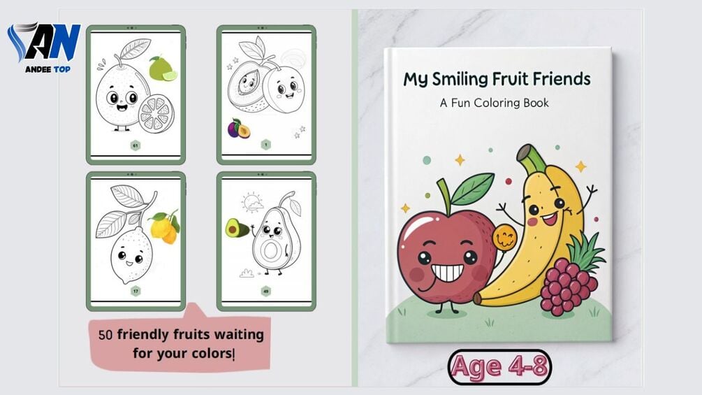 - 50 High-Quality Designs: A huge variety of friendly fruits to color.